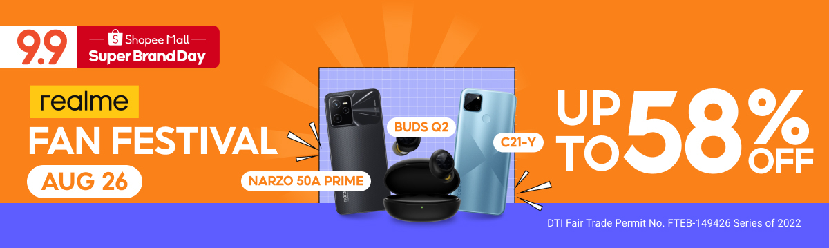 This August 26, get ready to have real fun at the realme Fan Fest Campaign! Enjoy Shopee-exclusive deals of up to 57% off and vouchers of up to ₱120 off on select realme Official Store products, as well as the chance to win awesome brand partner freebies!